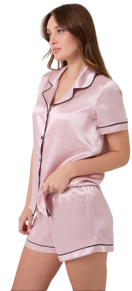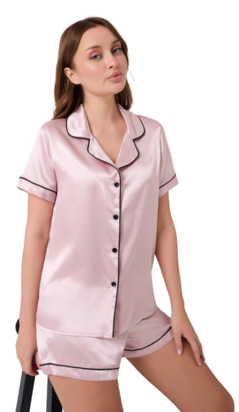 פיג'מותפיג'מת סאטן ורודה קצרה