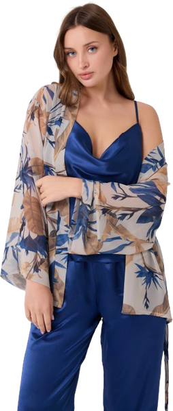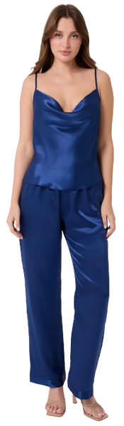 סט פיג'מת סאטן כחול – גופייה ומכנס ארוך