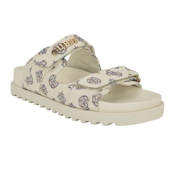סנדל נשים עם הדפס ייחודי ולוגו מוזהב