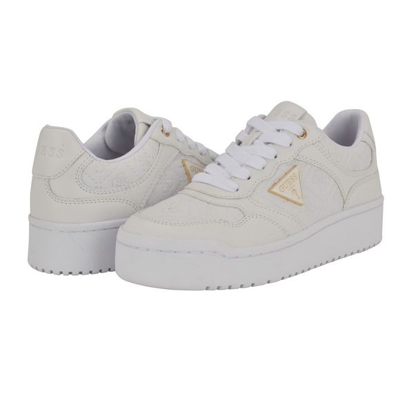 סניקרסנעל נשים לבנה עם הדפס GG ונגיעות זהב